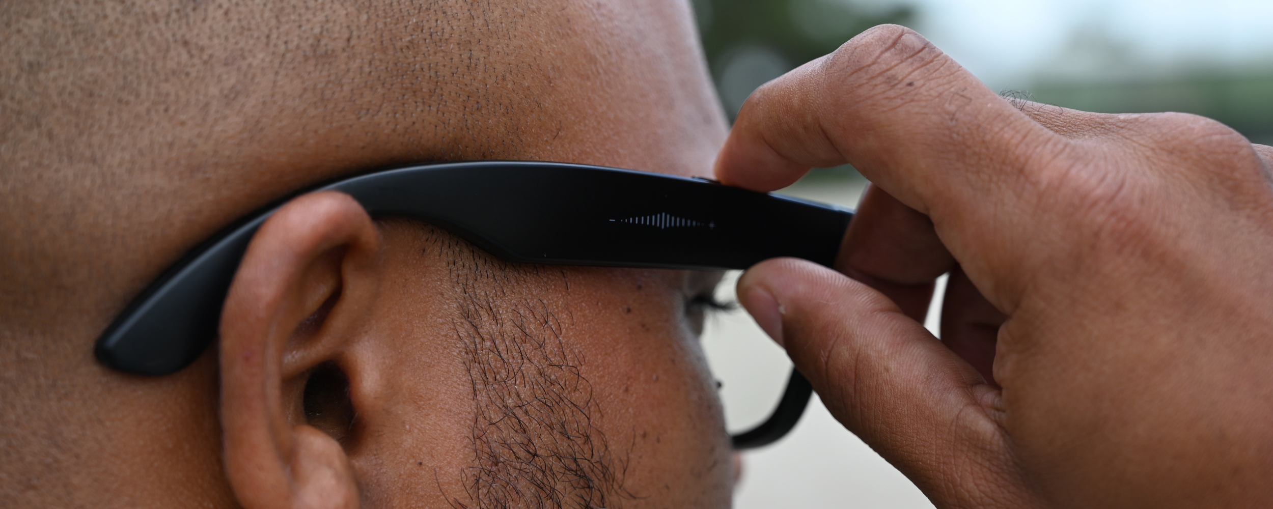 Bluetooth 5.3 audio with open-ear speakers delivers rich, balanced sound while keeping you aware of your surroundings. No earbuds required.